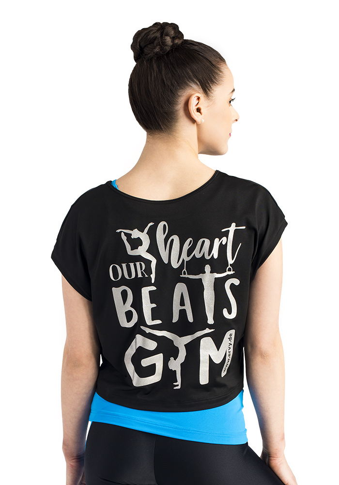 mit überschnittener Schulter und Ervy Textillogo vorne. Ein cooles Shirt zum Tanzen, Aufwärmen, oder einfach für den Alltag.