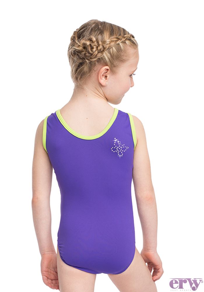 Turnanzug, ohne Arm, U-Boot-Ausschnitt vorne und tiefer Rundhals hinten, Arm- und Halsbündchen.