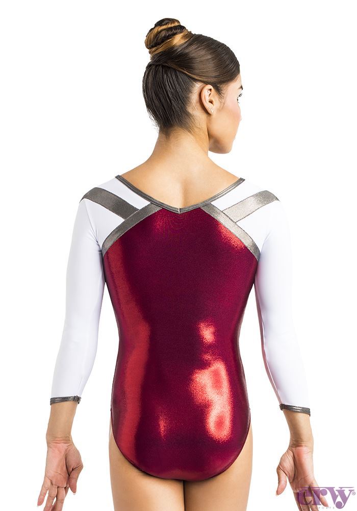 Turnanzug, 3/4-Arm mit V-Abschluss, flacher V-Hals vorne und tiefer V-Hals hinten, mit Arm- und Halsbündchen.