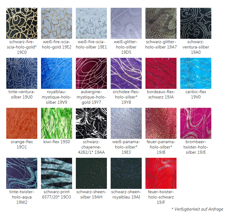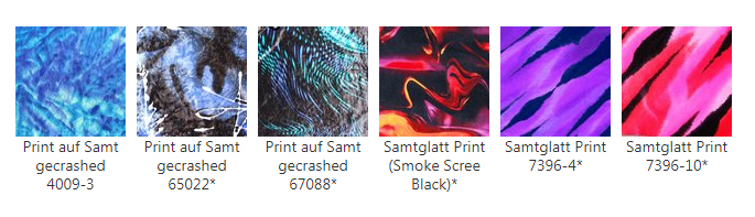 In der Textilindustrie wird gerne auf Veredelungsmethoden zurückgegriffen, wie z.B. die Folienkaschierung von Materialien. Hierbei werden unterschiedliche Folienmuster und Farben auf das Grundmaterial aufgetragen. Gerade Samt eignet sich hierfür als Grundmaterial ideal. Der Kontrast zwischen dem matten Samt und dem Glitzer ergibt insbesondere bei Turn- und Gymnastikanzügen einen schönen Effekt.