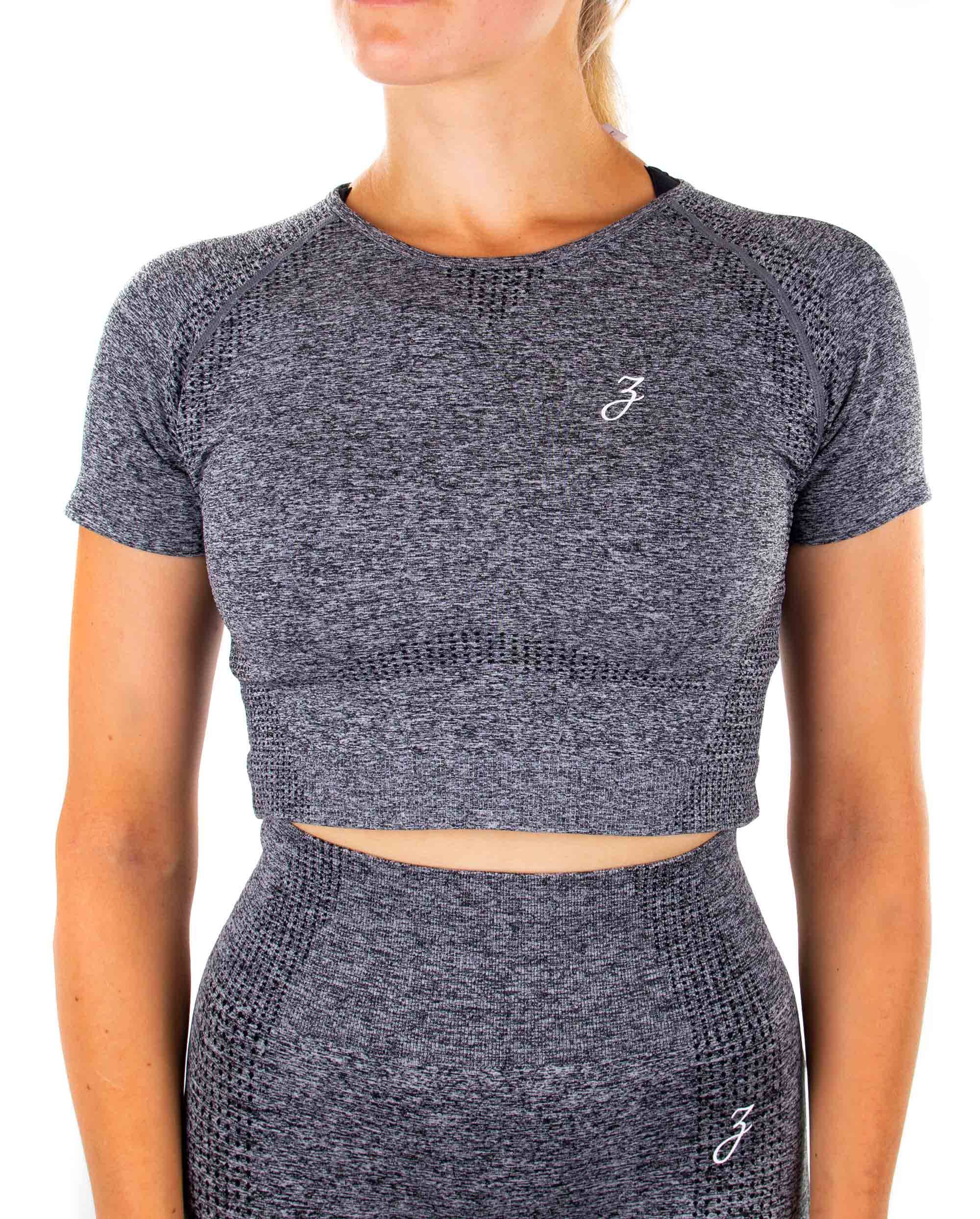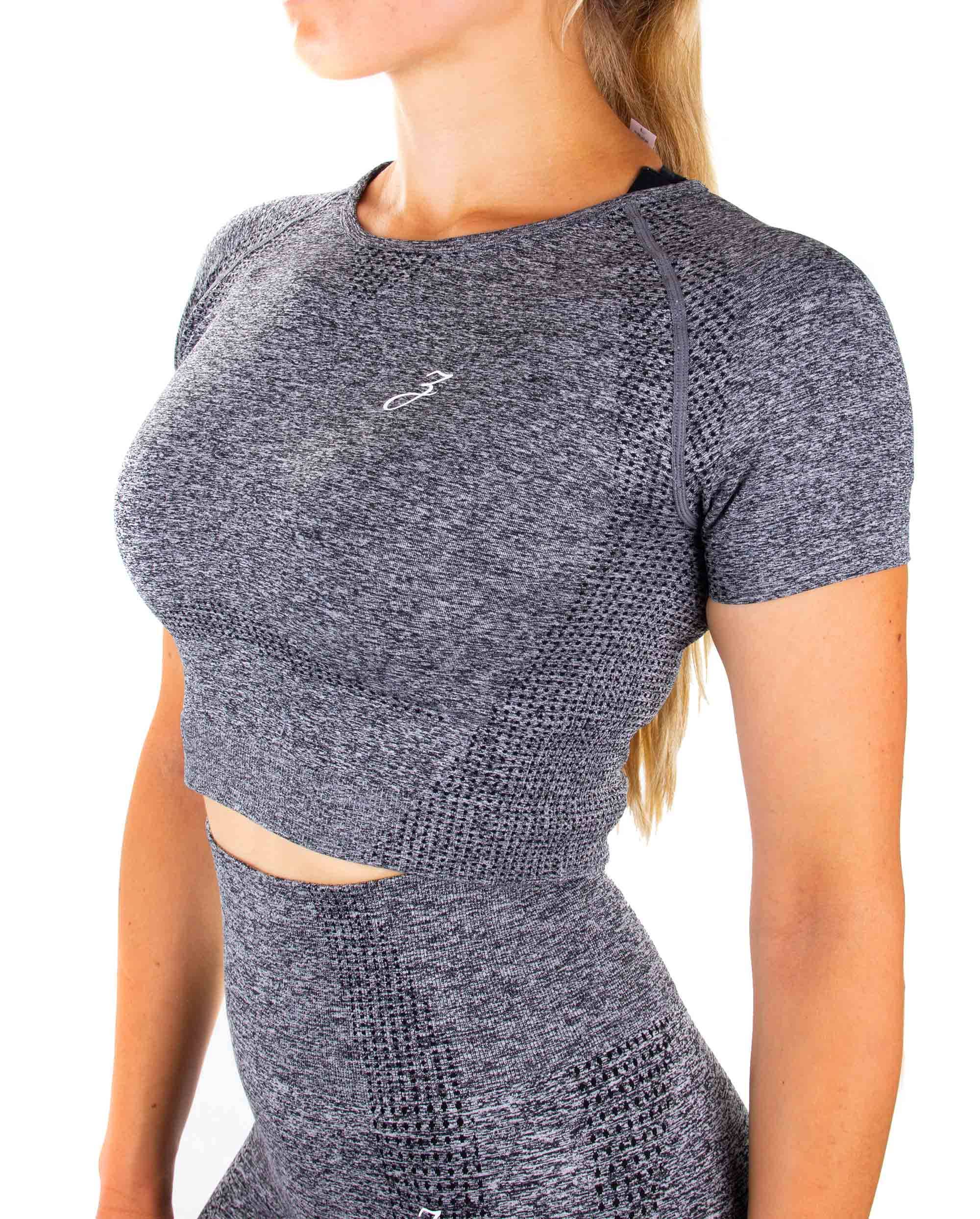 Das bequeme Sport Crop Top mit kurzen Ärmeln aus der „DYNAMIC“ Kollektion in grau lässt sich, dank der perfekt abgestimmten Materialzusammensetzung, perfekt zum Sport oder in der Freizeit tragen. Das bauchfreie Top lässt dich dabei immer stylisch und sportlich aussehen.